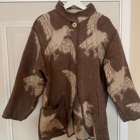 Tilstand? Pent brukt. Noe nupper på utsatte steder, spesielt den grå delen (tror det er by design). Den indre knappen er litt dinglete. Forbehold om løse tråder etc. Pris justert.