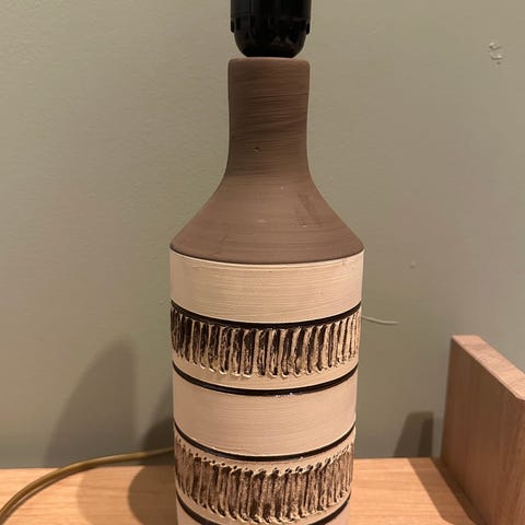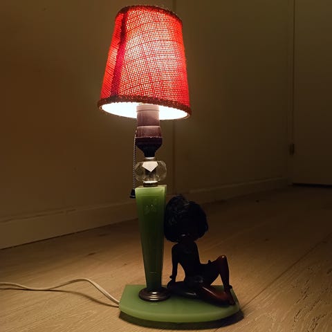 Vintage bordlampe av glass og metall