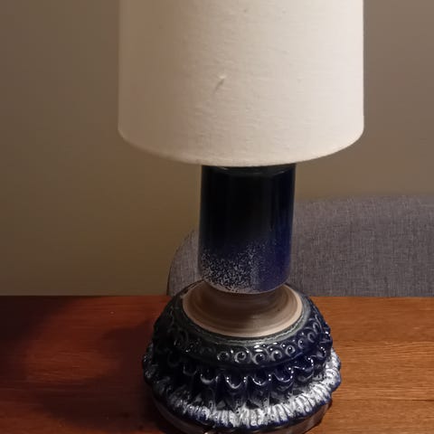 Fungerer som den skal. I strøken stand. Ingen riper eller hakk i glass. Mål høyde: ca 34cm.