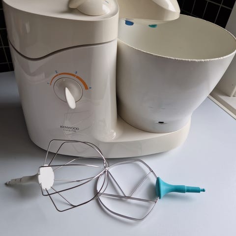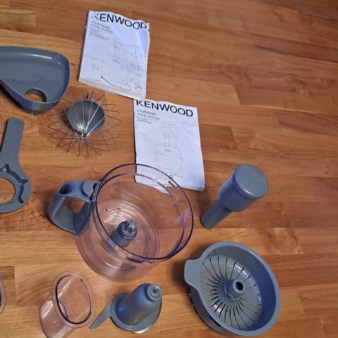 Diverse tilbehør til Braun kjøkkenmaskin: 1 stk bake-/rørebolle i stål, blender og 5 ulike hakker/rivjern. Passer til bruk med Braun kjøkkenmaskiner for ulike matlagingsoppgaver. Selve kjøkkenmaskinen er defekt.