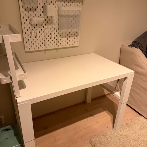 Praktisk og solid skrivebord for barn, kan justeres i tre ulike høyder. Farge hvit/grønn. Hylle med flere oppbevaringsrom medfølger. Bordplaten bærer preg av flittig bruk i ca. 5 år, og prisen er satt deretter😊. Like godt brukt kontorstol kan følge med gratis. Pulten står i kjelleretasje.