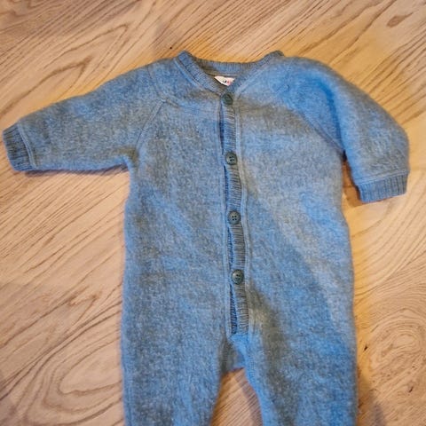 Joha sett i merinoull i nydelig grønnbrun farge. Settet består av en body og bukse. Lite brukt, fremstår som nytt. Røyk- og dyrefritt hjem.