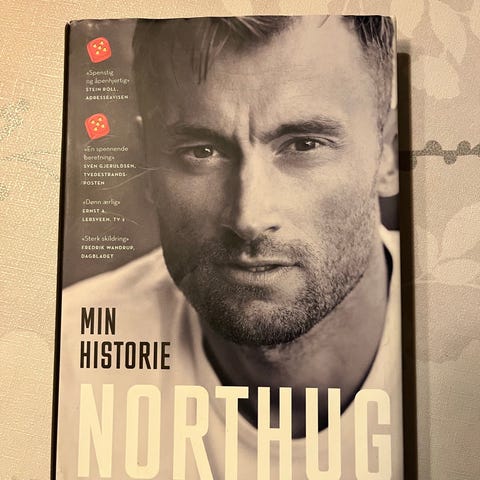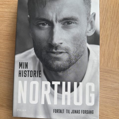 Northug Min Historie bok. Inneholder fortelling av Petter Northug med forfatterskap av Jonas Forsang. Boken har hvitt omslag og er på norsk.