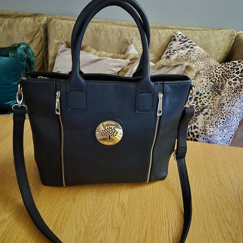 En kjempe fin og praktisk hverdagsveske med god plass til alt man trenger. I tillegg til stort hovedrom har den frontlomme med knapp + glidelås lomme inni og på baksiden.