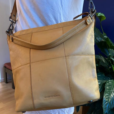 Vesken er pent og lite brukt, og har vært nøye med å behandle skinnet med både impregnering og lærkrem. Ingen skader eller feil på den.