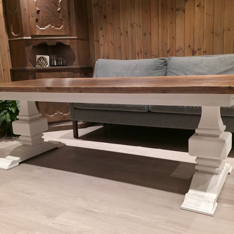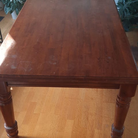 Gammelt malt bord med 6.5 cm bordplate til salgs 700 kr.