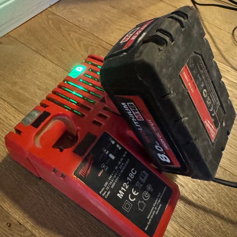 Milwaukee M18 5.0 Ah og M12 2 Ah batterier og lader til liten sokkel