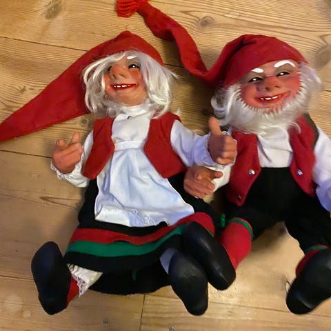 To store Arne Hasle Nisse-dukker, en populær norsk juledekorasjon.