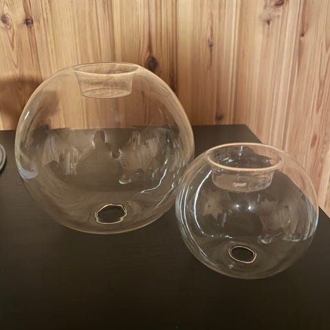2 flotte glassengler. Høyde 18 cm og 8.5 cm.