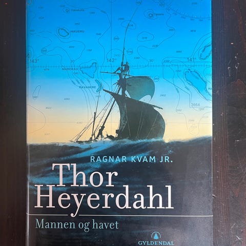 Ragnar Kvam Jr. Thor Heyerdahl Mannen og havet er en bok med fokus på Thor Heyerdahls liv og ekspedisjoner. Boken er utgitt av Gyldendal og har et blått omslag. Den gir en detaljert beskrivelse av Heyerdahls reiser og bidrag til utforskning av havet.