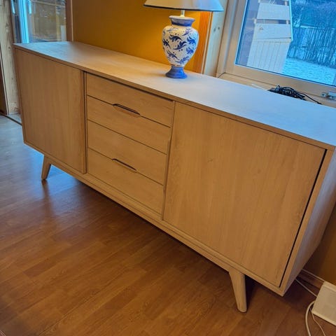 Skapet er tungt, og kjøper må bistå med bæring.