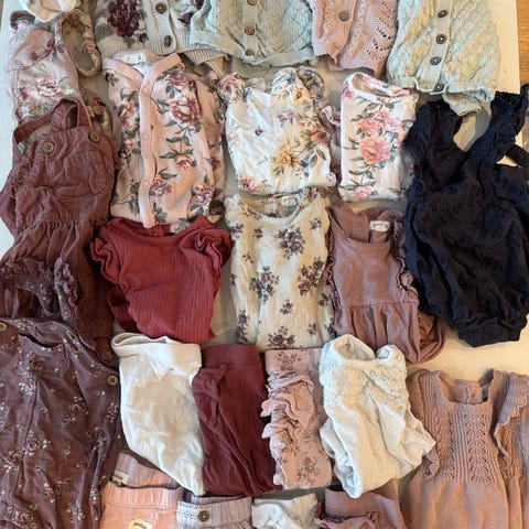 Noe er kjøpt brukt og vært pent/lite brukt, og noe er kjøpt nytt, men ikke rukket å bruke så mye. Nærmere beskrivelse av hvert plagg på bildene.