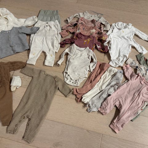 Helt nye og ubrukte jenteklær strl 50 selges. Kun tatt av lappen. 👶🏼Selges da vi ikke visste kjønn og kjøpte litt til hver.