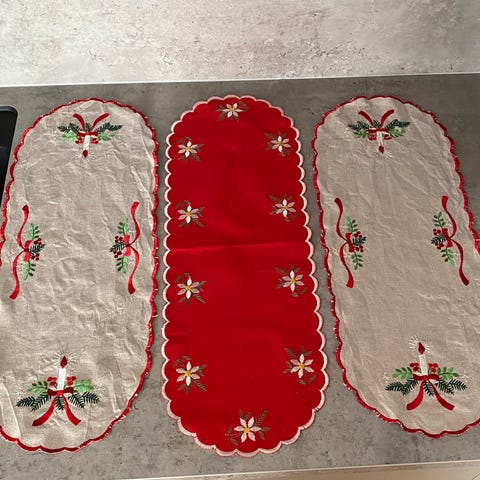 To røde og en hvit løper. Veldig pene og lite brukt. Det er Ekelund mønster-