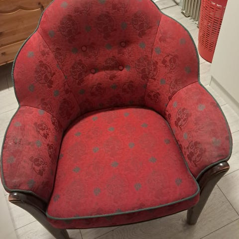 lenestol og fotstøtte ,lenestol 300kr+ fotstøtte 350 kr.En liten skinnveske til fjernkontrollen er festet på siden, men kan tas av eller er også inkludert.