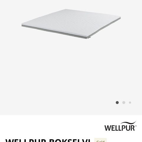3 uker gammel Wellpur overmadrass selges til redusert pris. Madrass er nesten ikke brukt og det har lagt tynn madrass beskyttelse over . Madrassen er som ny uten flekker og skader . Ble kjøpt på jysk og den kostet nesten 6000 ordinert . Ble kjøpt på tilbud til kr 2800.- selges nå for kr 2000.-