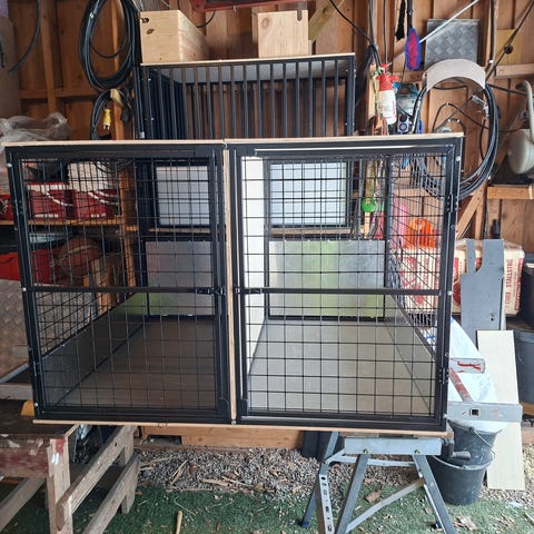 KELA Dobbelt hundebur med dører både foran og bak på begge dobbeltbur.