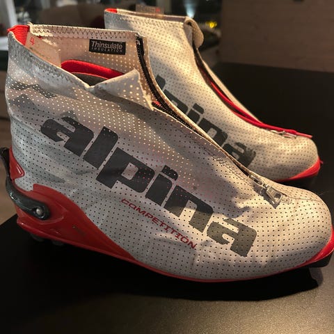 Selger disse pent brukte skiskoene fra Alpina i størrelse 45. Veldig mye bruk igjen i dem. Oppbevart rene og pene. Ingen skader eller feil på dem. Nypris ligger på 5000kr for disse, så her har du sjansen til å gjøre ett kupp. Selges for 1700kr pluss porto,