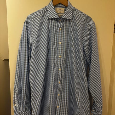 Ben Sherman skjorte i blå farge, størrelse L. Laget av bomull. Passer til menn.Lite brukt