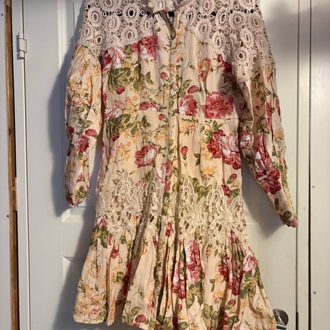 Som vist på et av bildene, så er det en liten del nederst ved skjørtet som har løsnet. Dette kan enkelt løses for en som kan å sy, eller så er det nok mulig å sende den til reparasjon.