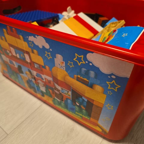 Fisher-Price Mega Bloks byggeklosser i forskjellige farger. Egnet for barn, laget av plastmateriale. Settet inneholder store byggeklosser som er enkle å håndtere for små barn.