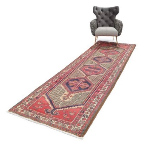 Dette ble kjøpt hos IKEA da de hadde egen avdeling for håndvevde persiske tepper. Klassisk geometrisk mønster i rolige naturfarger.