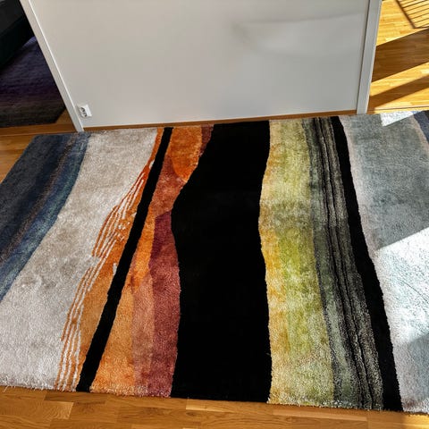 Teppet er av 100 % ull, slitestrtkt og lunt. Det er ingen skader eller synlige flekker, og har vært godt tatt vare på i røyk- og dyrefritt hjem.