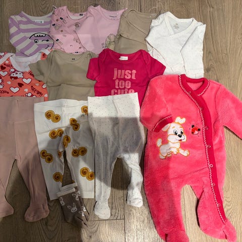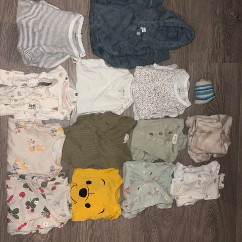 Kjempesøt klespakke med klær i størrelse 56 selges. Har to stykker av denne pakken, så passer også til tvillinger 😊