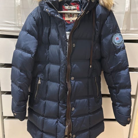 Her får du en varm og anvendelig dunkåpe både til kalde januardager og litt variable dager med slaps og sur vind utover sesongen! Vintett, vanntett og pustende. Pene glidelåser. Jeg selger til høystbydende, og sender pakken i god emballasje.