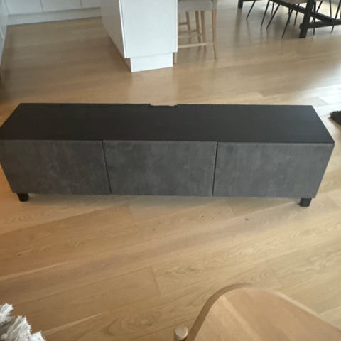 Består av 1 stk 120 cm modul, og 1 stk 60 cm modul. Begge har bein. Følger med toppplate i glass som dekker hele seksjonen så skjøten ikke viser.