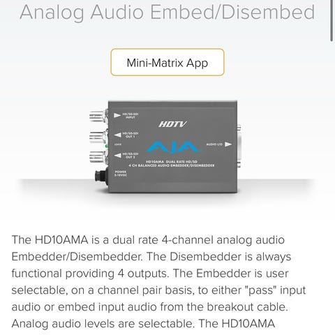 Tilkoblinger: 3G-SDI inn/ut og HDMI-utgang.