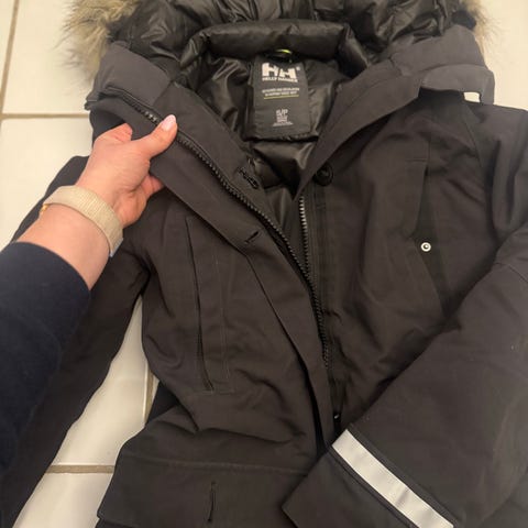 Helly Hansen Parkas for dame selges. Størrelse L. Jakken har hette med avtagbar pelskant. Den er 3 år gammel, men meget lite brukt.