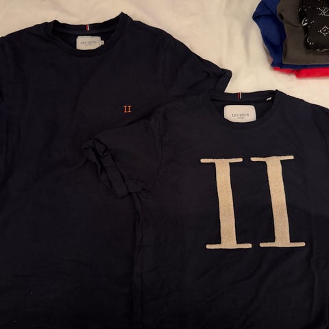 Foret Les Deux Jakke i størrelse S, blå og grå farge. Ble kjøpt som gave til sønn, men ble for liten pga. plutselig treningsiver og større overkropp. Type: collegejakke eller bomberjacket. Trykknapper. Helt ubrukt, men lappen ble tatt av før den ble prøvd.