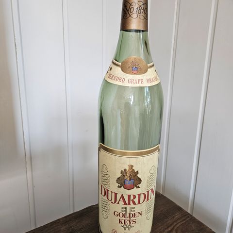 3 flasker selges. Dujardin 3liter, Smirnoff 2,5 liter og Johnnie Walker 2 liter. Flaskene er ca 40 år gamle og meget vanskelig å få tak i idag. Selges samlet.