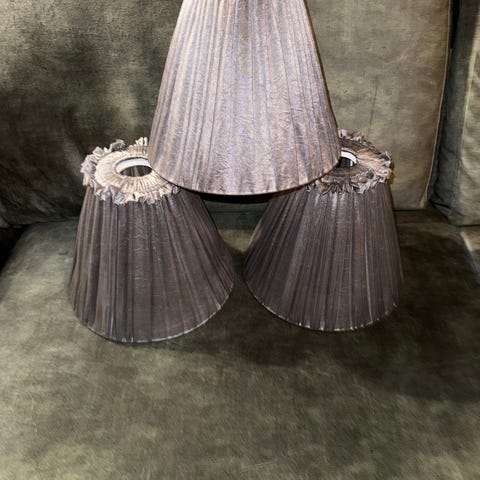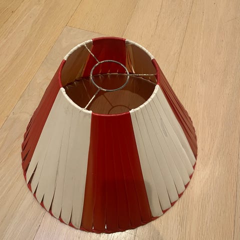 Selger lampeskjerm til tivolilampe, må trekkes om.