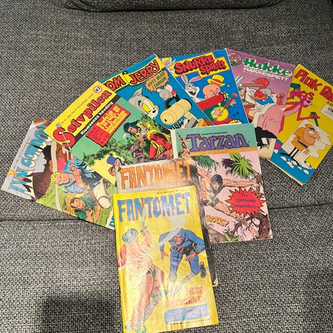 Tilhørte er antikvariat, men da eieren døde ble ting solgt ut usortert, slik at det kan være en del sjeldne ting også. Jeg har ikke tid til å taksere hvert blad, så bud ønskes