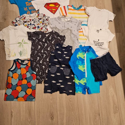 Klespakke str 92 med diverse klær, bl.a. fin overdel fra Newbie, fin overdel fra Pomp de Lux, buksedress og enkelte plagg i ull.