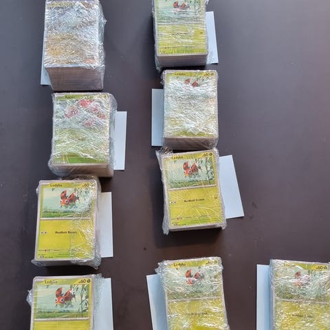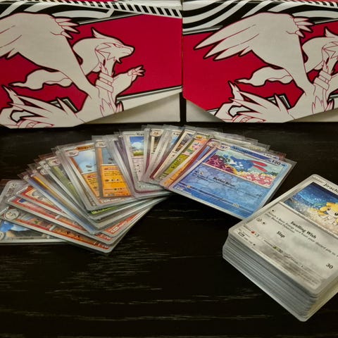 Pokémon Stellar Crown samlekortpakke med flere boosterpakker og kort inkludert. Produktet inneholder kort fra Stellar Crown-serien, egnet for samlere og spillere.