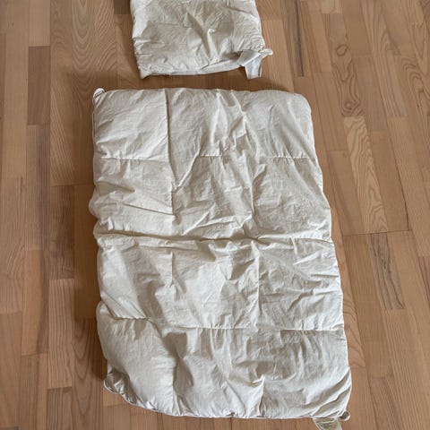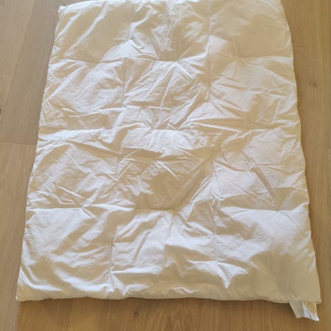 Pakke med helårs dundyne 80 x 100 (passer til sprinkelseng) og dunpute (35 x 40) selges. Pent brukt og ingen flekker eller hull. 2 sett sengetøy følger med, dynetrekk har begge glidelås i bunnen.
