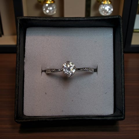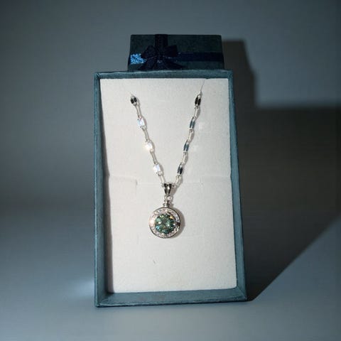0,5 ct Moissanite S925 nøkkel halskjede. Moissanite steinen er 5mm og har fargen sea blue. Det følger GRA sertifikat med