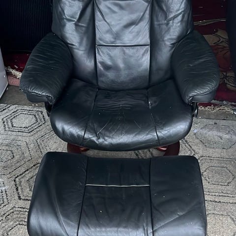 Sofastol eller hva man nå kaller en stol av denne karakteren selges grunnet ommøblering. Den er pent brukt, men har litt slitasje av farge.