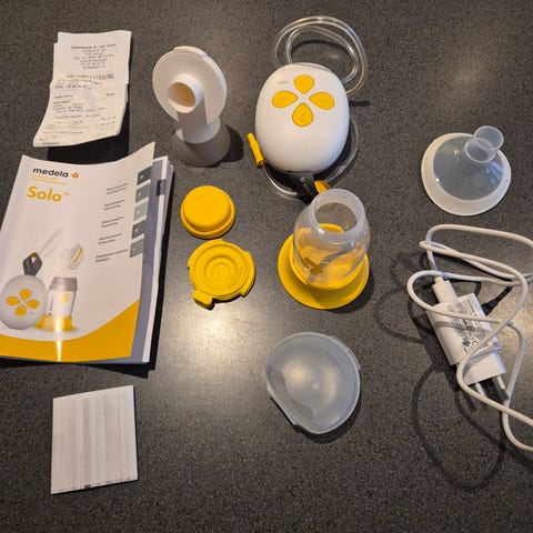 Selger en elektrisk brystpumpe fra Medela. Den er kun brukt i ca en uke. Det mangler en «fot» til flasken, denne har ikke noe betydning da flasken fint står av seg selv. Se bilde 5.
