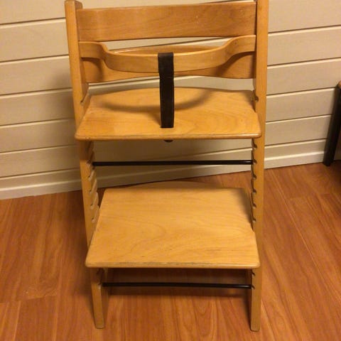 Stokke ryggstøtte og bøyle for tripptrapp stol selges samlet. Så god som ny. Følger også med brett, men med noen bruksmerker/farge.