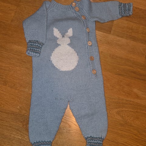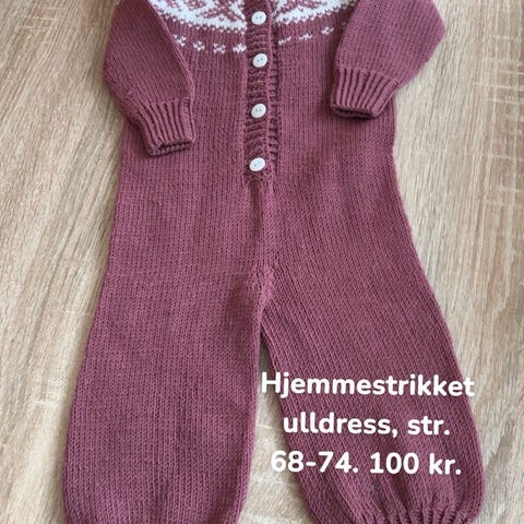 Nattdrakt strikket i merinoull, brukt mens barnet var ca 4-11 mnd.
