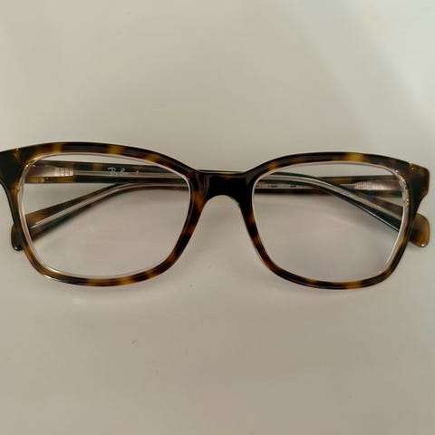 Brillene er 2 år gamle og kun brukt sporadisk for å avlaste øynene fra kontaktlinser. De er derfor i god stand og uten riper i glassene.