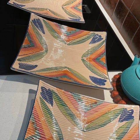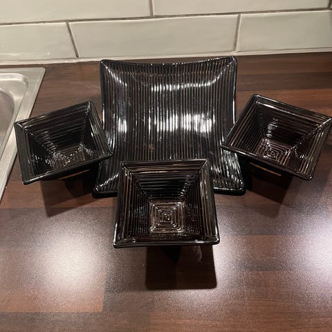 8 fat fra Kari Trestakk 20 x 20 cm. Noen bruksmerker på noen av dem. Selges grunnet plassmangel.