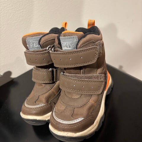 Superfit barne sko i størrelse 24, unisex. Skoene er svarte med brune detaljer og har borrelås for enkel justering. Egnet for barn.