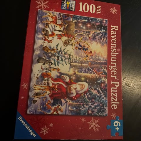 Ravensburger Julemotiv puslespill med 100 biter. Puslespillet har et juletema med motiv av julenisse, reinsdyr, og skogsdyr i vinterlandskap. Egnet for barn fra 6 år og oppover.