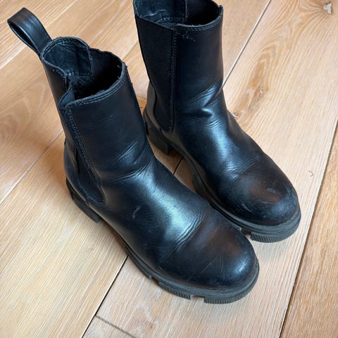 Pent brukt og veldig kule Chelsea boots til jente! Brukt til bursdagssko! Selges billig. Litt store i størrelsen.