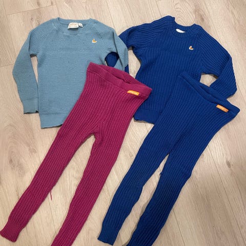 Ullgenser og ullbukse fra Lanullva i størrelse 6 år selges samlet.
